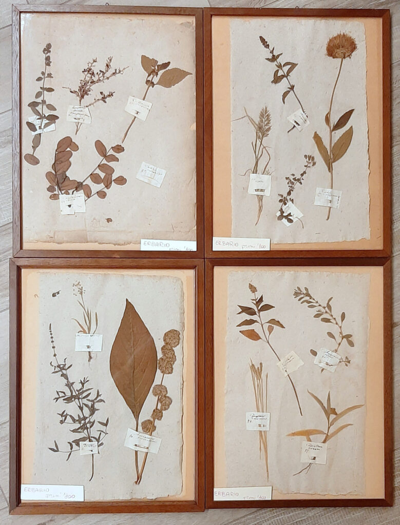 Si tratta di 4 cornici d’epoca con all’interno fogli di erbari con piante erbacce. Non è segnato il nome del botanico autore delle tavole stesse ma hanno una provenienza lombarda.