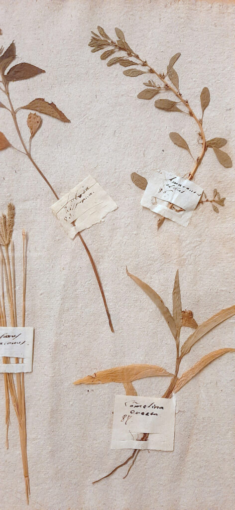 Un erbario storico è una raccolta di piante essiccate e pressate, conservate su fogli di carta e accompagnate da annotazioni che ne descrivono il nome, l’origine e le caratteristiche. Potremmo immaginarlo come una sorta di “biblioteca delle piante”, costruita nel passato con un intento scientifico, educativo o esplorativo.