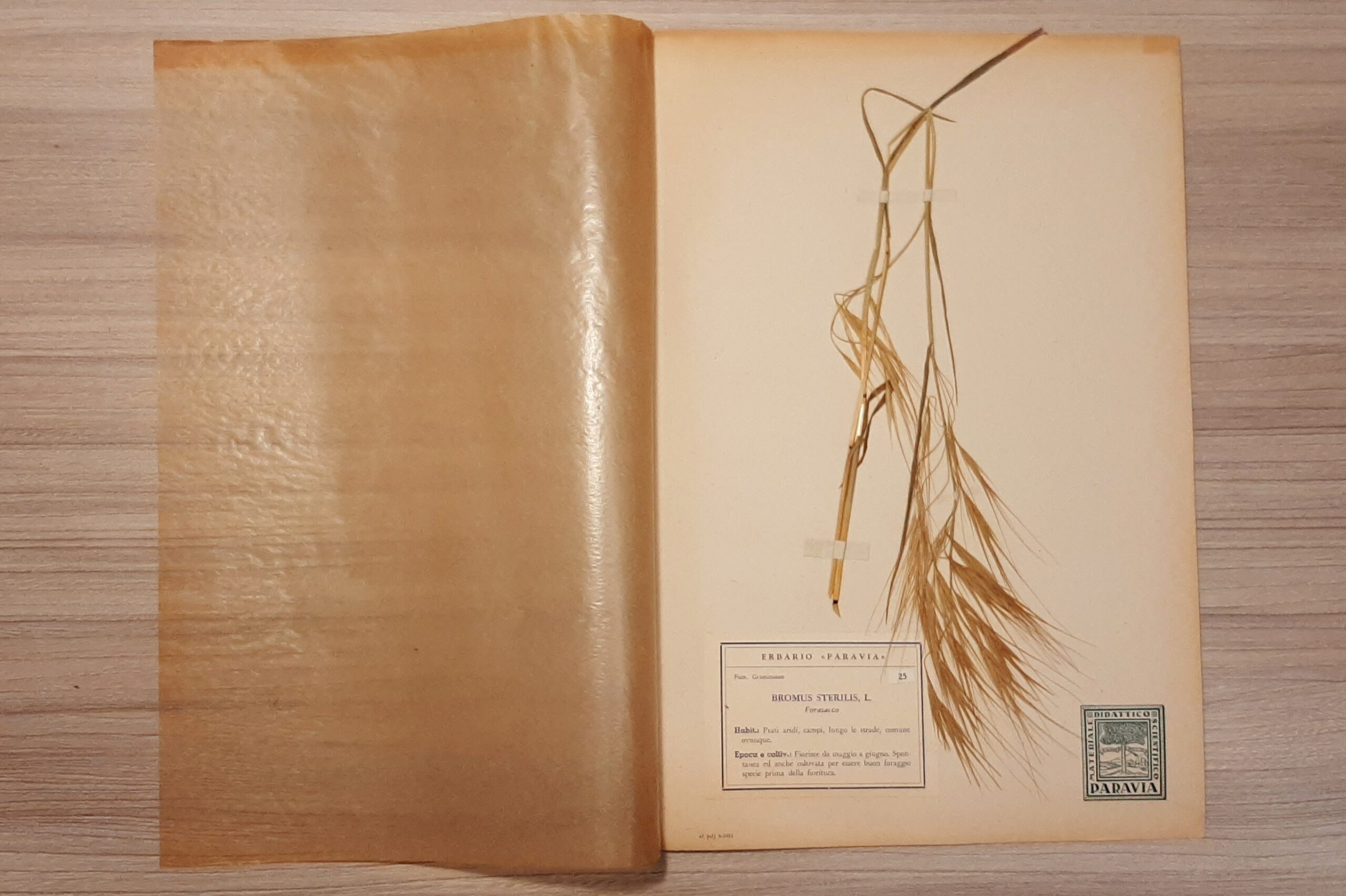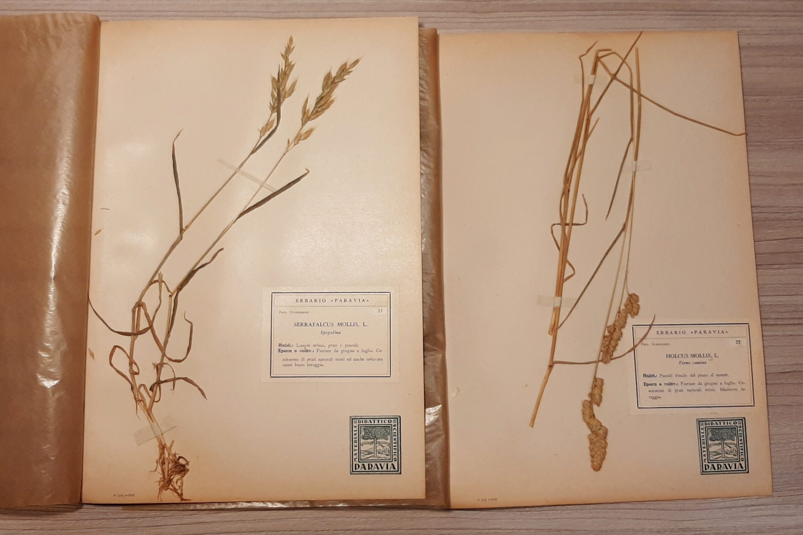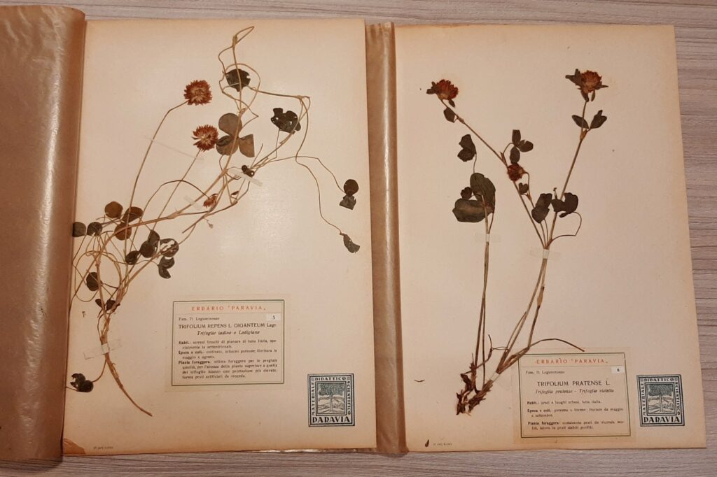 Un’altro interessante pezzo di storia della divulgazione delle scienze rientra nella nostra collezione, quello dell’Erbario delle piante foraggere già venduto nel 1935 sul catalogo CATALOGO DEI SUSSIDI DIDATTICI E DEI LIBRI PER LO STUDIO E LA PROPOGANDA DELL’AGRICOLTURA, a pagina 66 (pagina 76 del pdf), dove viene descritti come: “Erbario foraggero di 25 specie, le più interessanti dei nostri prati, sia spontanee, sia da lungo tempo coltivate, su fogli 36 X 25 in una cartella“.