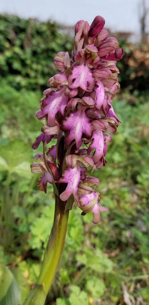 Tra le orchidee spontanee più spettacolari del Mediterraneo, Himantoglossum robertianum (nota in passato anche come Barlia robertiana) è una delle prime a comparire all’inizio dell’anno. La sua fioritura può iniziare già tra gennaio e febbraio e proseguire fino ad aprile, quando molte altre piante sono ancora in fase vegetativa.