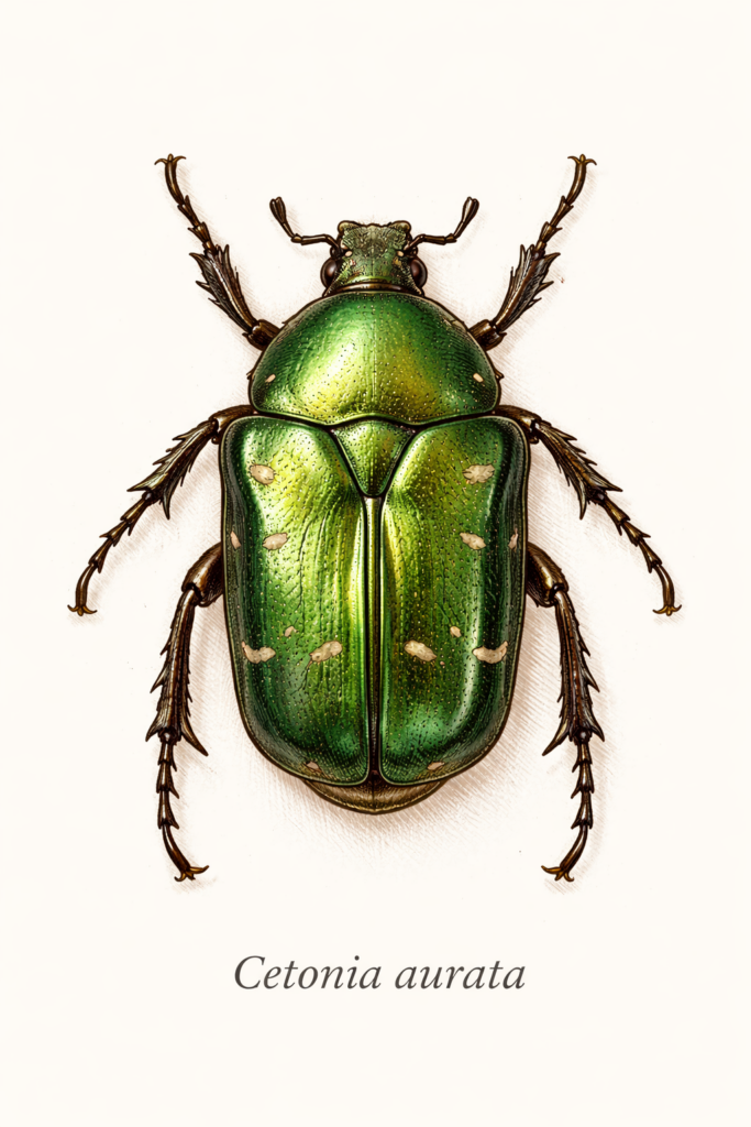 Foto 1: Adulto di cetonia dorata – Di I, Chrumps, CC BY-SA 3.0, https://commons.wikimedia.org/w/index.php?curid=2521547